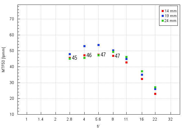 | 소니 FE 14mm F1.8 | 63 | 66 | 71 | 74 | 69 | 61 |