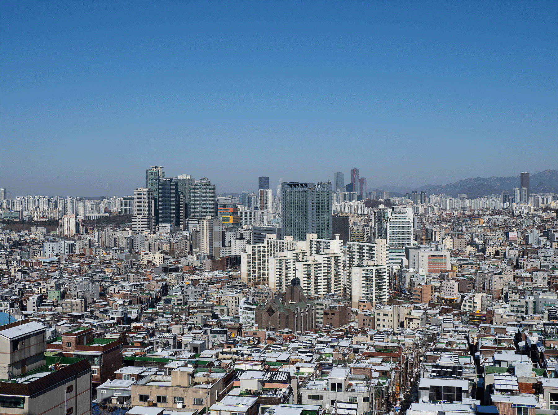 위 이미지의 경우 본래 하늘색이 파란 색이라 노을색과 혼합되어 보라색 비슷한 어정쩡한 색으로 표현되어 그다지 어울리지 않습니다.따라서 하늘이 파란색일 경우에는 사용하지 않는 것이 낫다고 봅니다. 몇 가지 예를 더 보겠습니다.겨울이라 특별히 갈만한 곳이 없어서 옥상에서 간단히 담아 봤습니다.