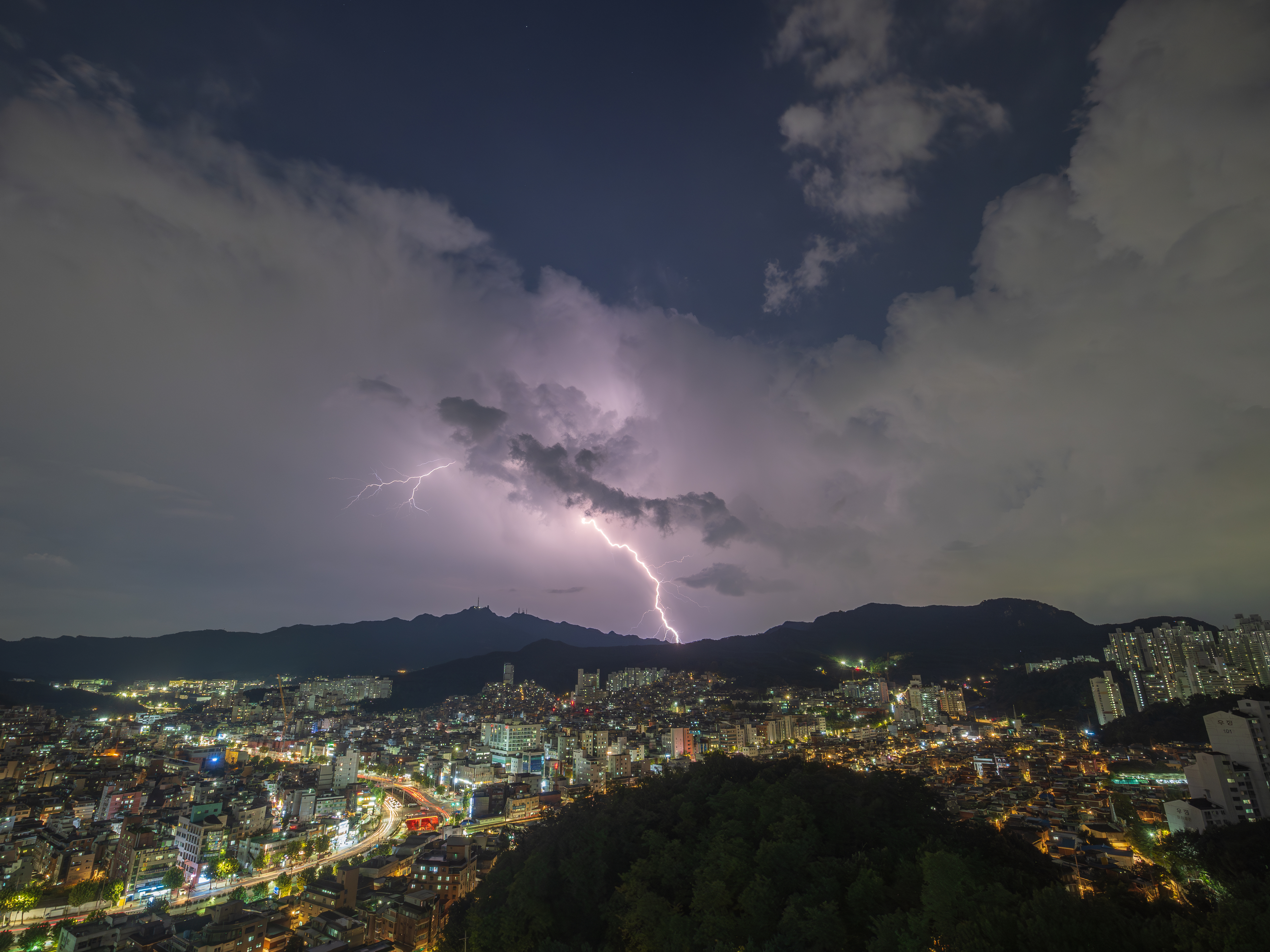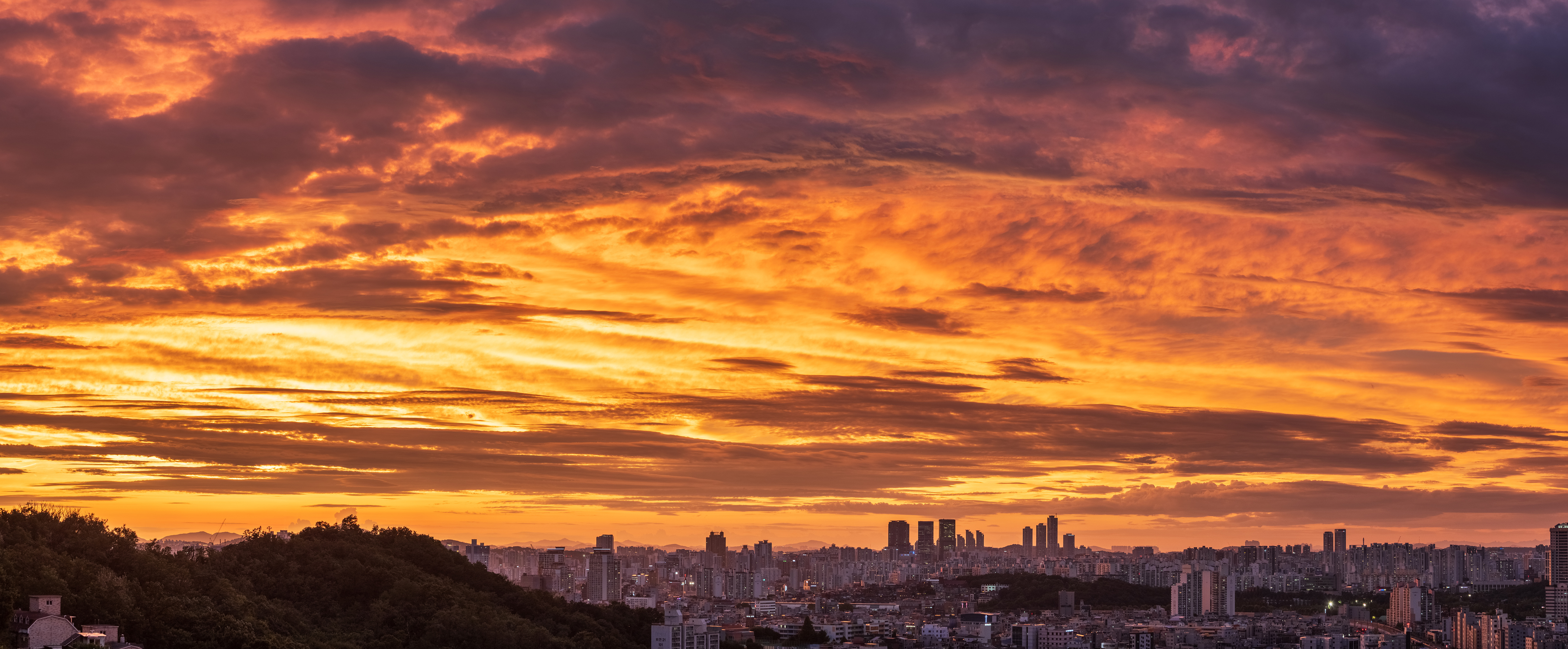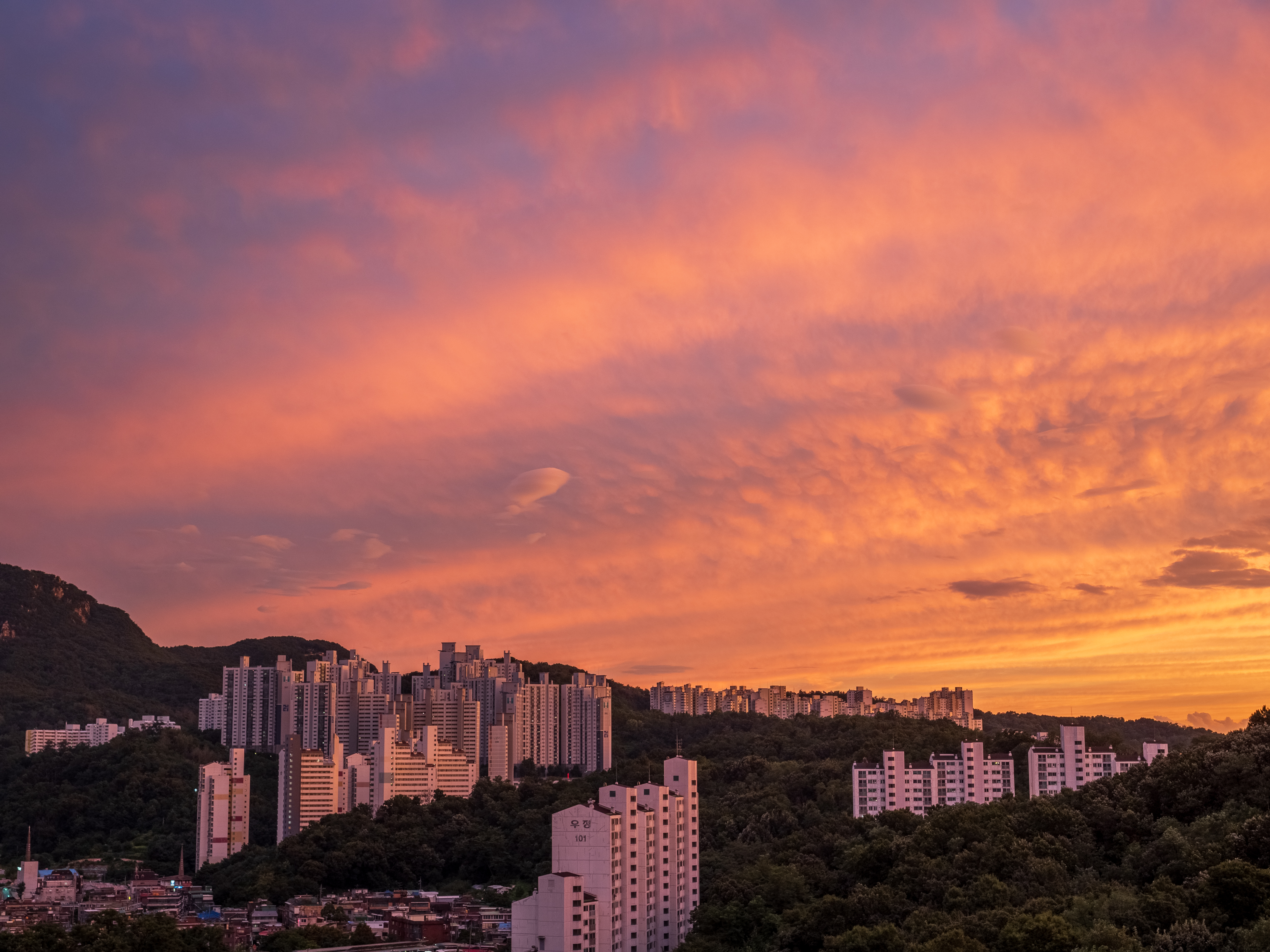 아래 이미지는 태풍(카눈) 전 날의 노을입니다.제 경험으로는 태풍 전날에 노을이 생기는 경우 항상 극적인 모습을 보여주더군요.
