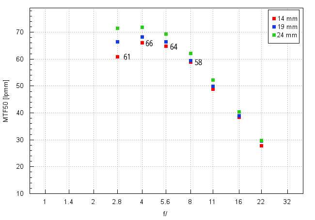 | 소니 FE 14mm F1.8 | 63 | 66 | 71 | 74 | 69 | 61 |
